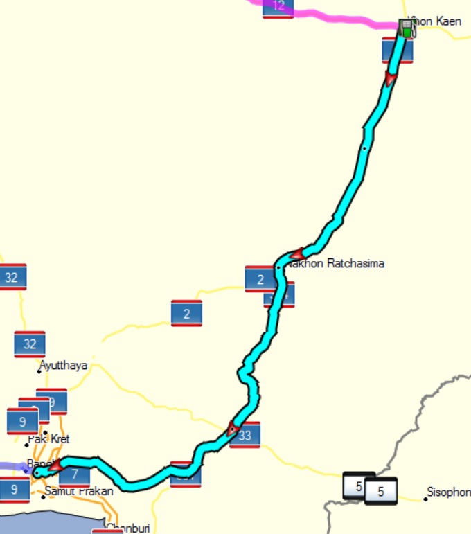 Heute stehen genau 500 km auf dem Plan und zwar nach Hause. Erst die 2, die recht gerade ist und dann die 304, die durch den Khao Yai National Park etwas onduliert ist aber danach auch eher schnell und gerade ist.
